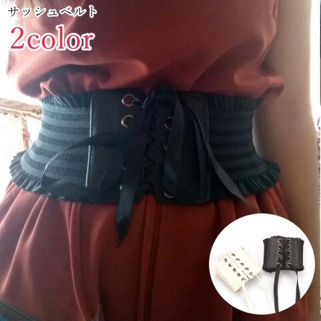 サッシュベルト ファッションベルト レディース 女性 ファッション雑貨 太め 幅広 コルセット風 レースアップ スナップボタン