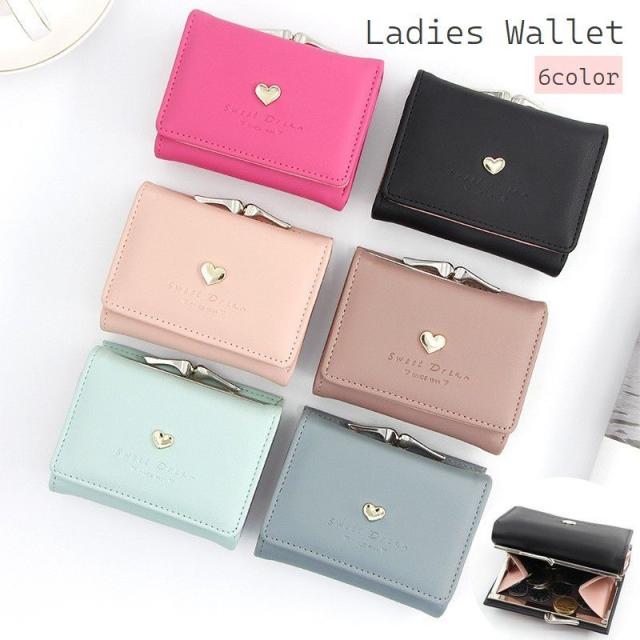 三つ折り財布 レディース 女性用 お財布 レザー調 コンパクト 小さめ がま口 小銭入れ お札入れ ハート おしゃれ かわいい