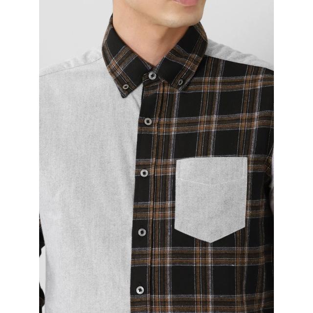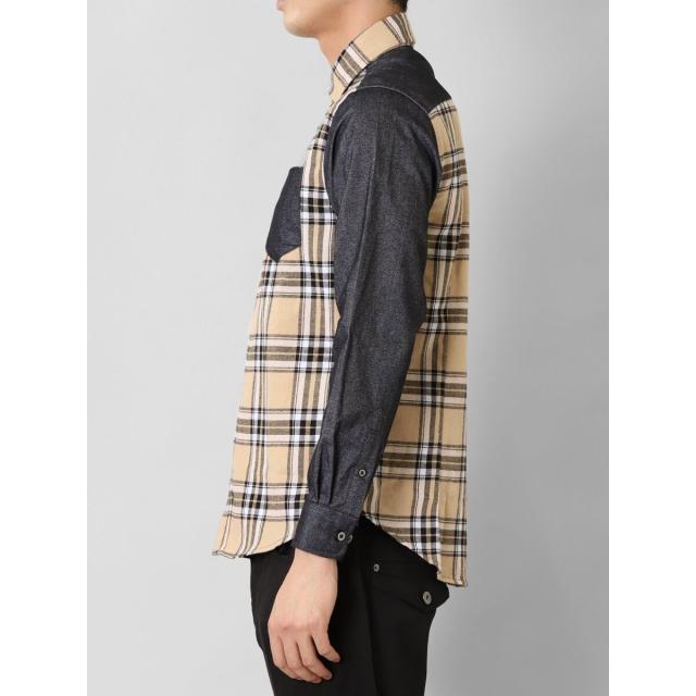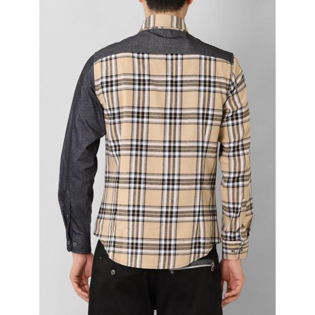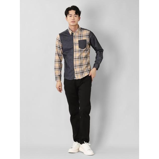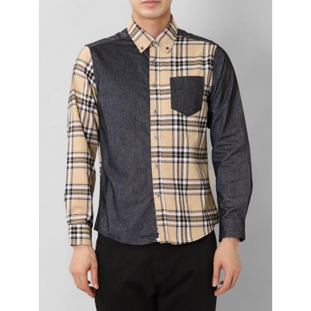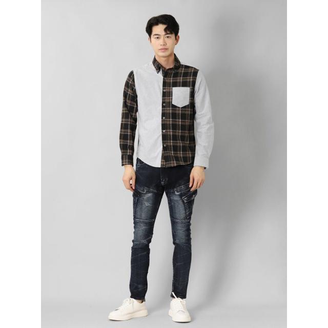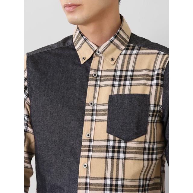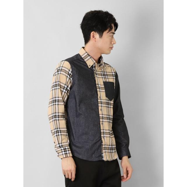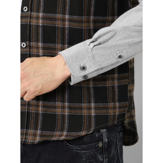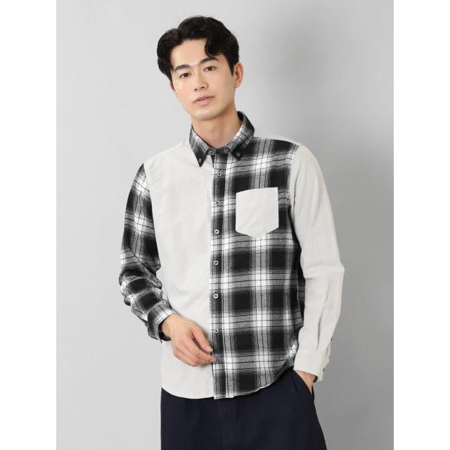 モードな雰囲気に仕上げたボタンダウンの長袖シャツです。チェックと無地で大胆に切り替えたクレイジーパターンが存在感抜群。一枚着としてはもちろん、アウターやジャケットインに着たり、Tシャツの上に羽織ったりと着こなしのバリエーションも豊富です。左胸ポケット付きで利便性にも優れています。