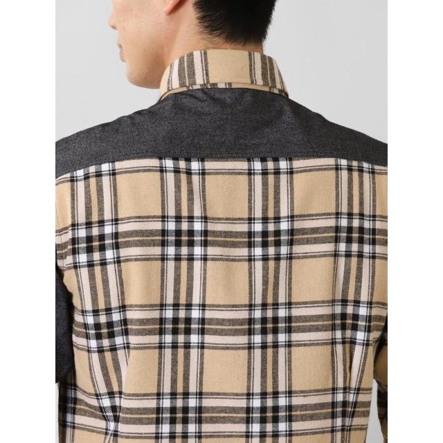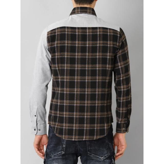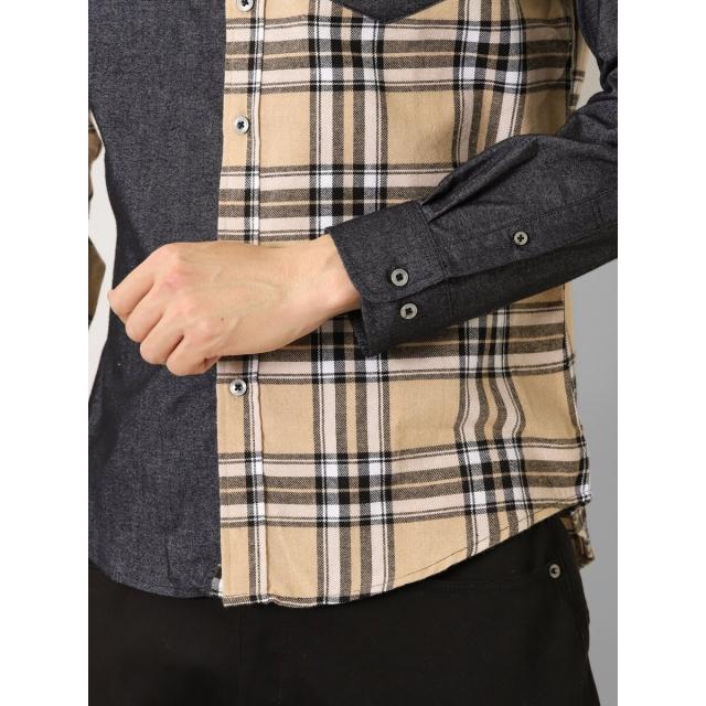 起毛チェック無地 クレイジーボタンダウン長袖シャツ