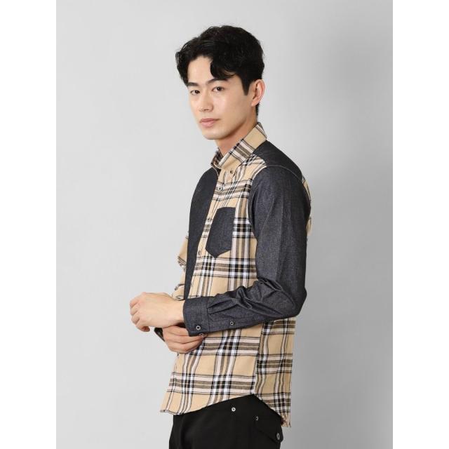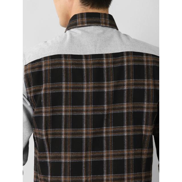 セマンティックデザイン 起毛チェック無地 クレイジーボタンダウン長袖シャツ