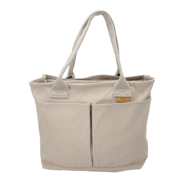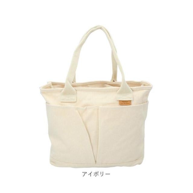 T字の仕切り付きで小物が迷子になりにくい!誰でも収納美人になれる「キャンバス仕切りトート Lサイズ」が登場。しっかりとマチを設け、小物がすっきり収まる♪お出かけや通勤・通学にはもちろん、マザーズバッグとしても活躍するトートバッグ。通気性と強度のバランスが抜群!しっかりとした厚手のキャンバス素材を使用。ナチュラルな素材感も魅力♪収納スペースは3つのスペースに仕切られており、小物の整理整頓がラクチン◎大スペース開口部は天ファスナー式で、プライバシーを確保。内側はA4サイズ対応!ノートや大きめのポーチ、長財布だってラクラク収納できちゃう♪中スペースは、細々とした小物類の収納に最適。ランチボックスを入れてもOK。ハンドクリームやリップクリームなどを収納できる、ミニサイズのオープンポケット付き。小ポケットは500mlペットボトルや折りたたみ傘をすっぽりと収納可能。取り外し可能な底板付きで、荷物を安定した状態で持ち運びOK。しっかりと自立するのもポイント。(※仕切りは底面に縫い付けされていない設計なので、3つの収納スペース全てに底板が収まる形になります。)フロントに深さのあるオープンポケット×2を配置!サッと取り出したい小物の収納に便利。持ち手は肩掛けしやすい長さに設計。フロントのロゴタグがアクセント。豊富なカラーバリエーションから、お気に入りを選んで♪