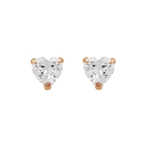 ハートシェイプのキュービックジルコニアがきらきらと輝く、ピンクゴールドのピアス。