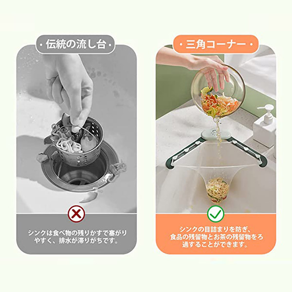三角コーナー キッチンシンクストレーナー 折りたたみ可能 衛生的 料理 残飯 食べ残し 衛生用品 生ごみ