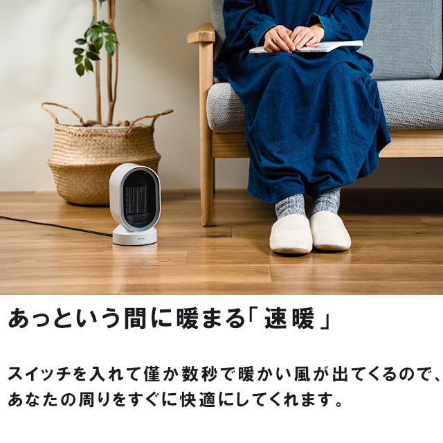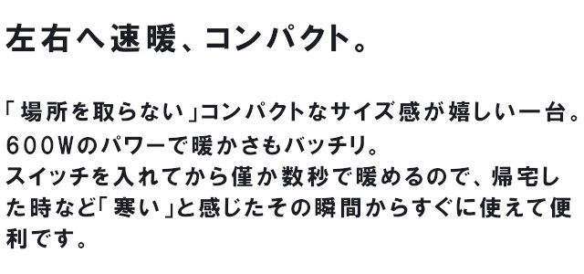 600Wのパワーで暖かさもバッチリ。スイッチを入れてから僅か数秒で暖めるので、帰宅した時など「寒い」と感じたその瞬間からすぐに使えて便利です。