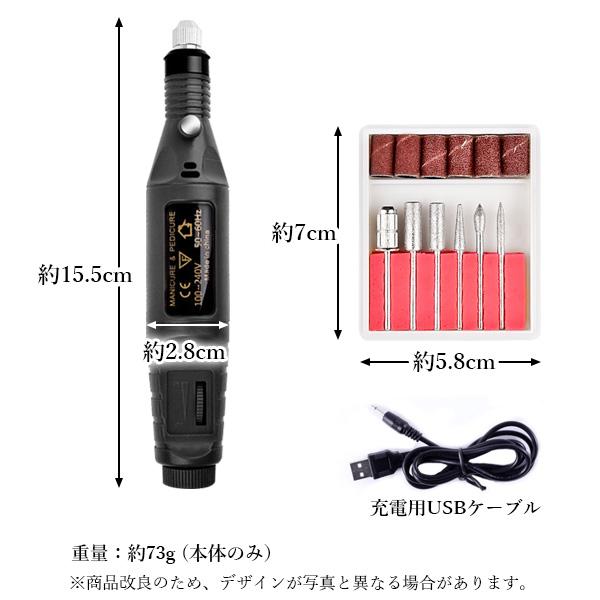 ◆1年保証付◆ 電動ネイルマシーン ブラック ネイルドリル ジェルネイル オフ セルフネイル ビット コンパクト USB (管理S) 送料無料