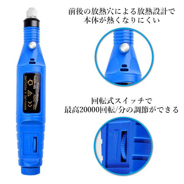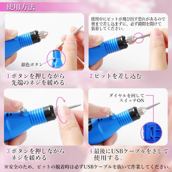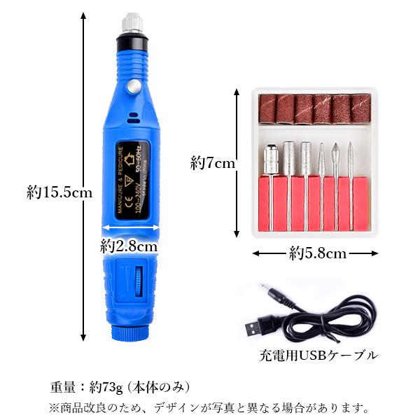 ◆1年保証付◆ 電動ネイルマシーン ブルー ネイルドリル ジェルネイル オフ セルフネイル ビット コンパクト USB (管理S) 送料無料