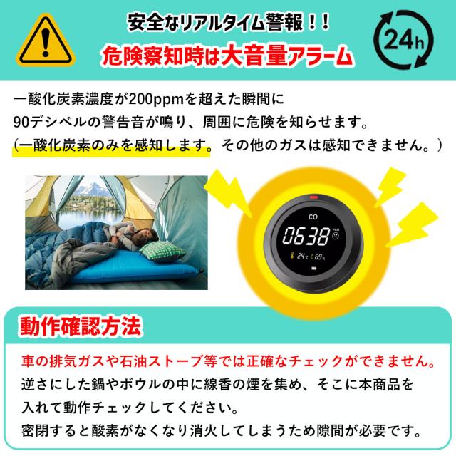 一酸化炭素チェッカー キャンプ用 一酸化炭素 中毒 警報器 キャンプ 車中泊 冬キャン サウナ 防災 充電式 温度計 日本語説明書付き