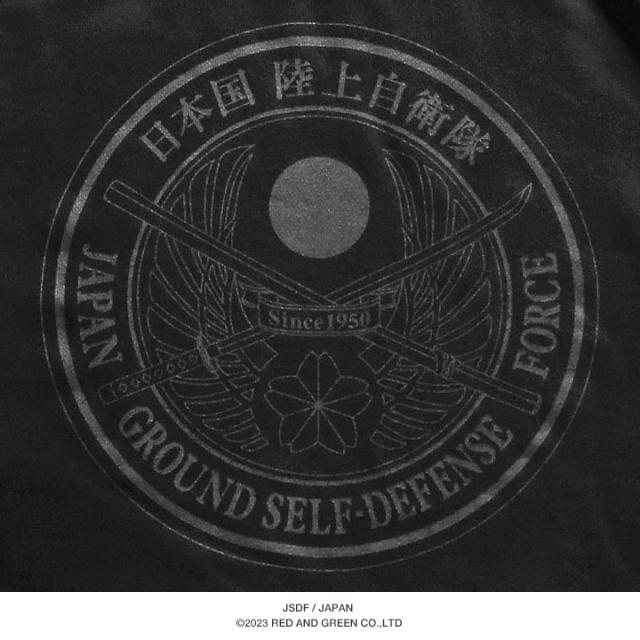 背中に、丸型(基本型)、右袖には盾型の桜刀と共に陸自所属を表すJGSDFロゴを刻印。日本の工場による安心の高品質プリント。
