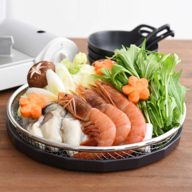 トンカツや串揚げなど、幅広い揚げ物料理に対応します。お鍋をする際にお野菜を入れるザルとしても重宝します。