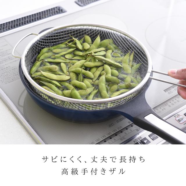 燕三条 ざる ザル ステンレス 取っ手付き 24cm 日本製 キッチン 調理器具 逸品物創 絶妙メッシュの水切りしやすい手付きザル