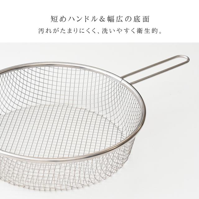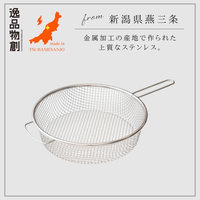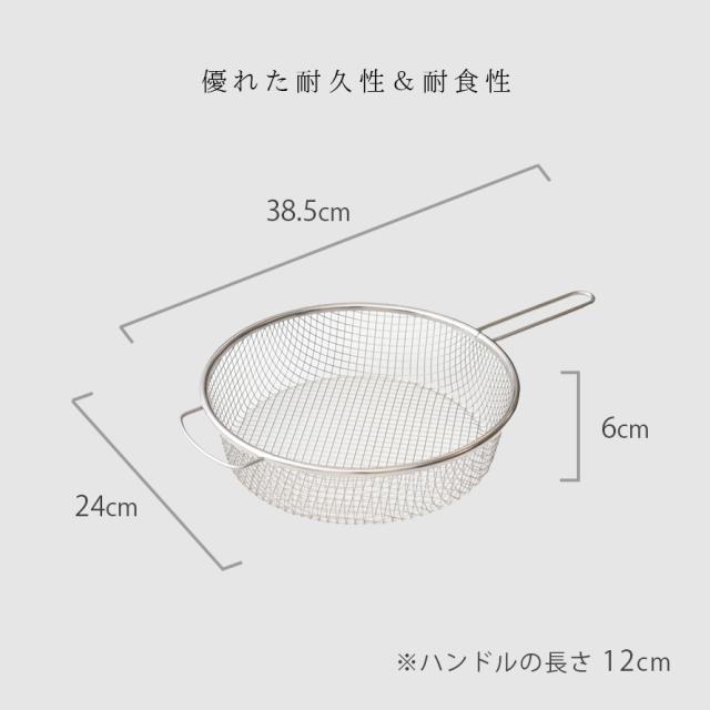 燕三条,ステンレス,ざる,ザル,丸型,円形,フライヤー,持ち手付き,取っ手付き,ハンドル,深型,網目,粗目,大きい,大きめ,水切り,油切り,揚げ物,フライ,唐揚げ,天ぷら,野菜,鍋,麺類,蕎麦,そうめん,うどん,日本製,高級,高級感,調理器具,調理道具,キッチンツール,キッチン,台所,調理,料理,家事,キッチン用品,キッチン雑貨,台所用品,キッチンアイテム,キッチングッズ,時短,アイデア,便利グッズ,おすすめ,オススメ,人気,清潔,衛生的,汚れが落ちやすい,洗いやすい,乾きやすい,錆びにくい,サビにくい,丈夫,上質,高品質