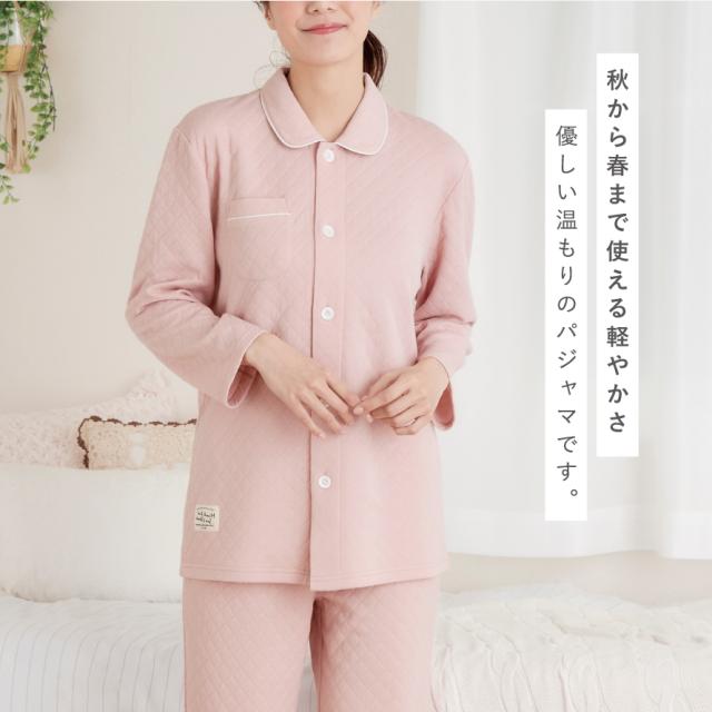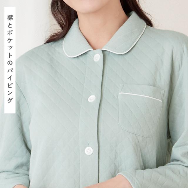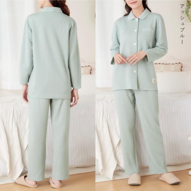 パジャマ レディース 冬 暖かい 冬 あったか 女性 裏起毛 キルト 中綿 前開き 冬用 ルームウェア 長袖 上下 大きいサイズ ふんわり優しいキルトパジャマ