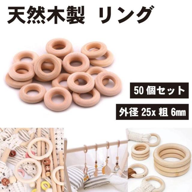 【50個セット】天然木製 リング 手芸パーツ 無塗装 DIY ハンドメイド 手作り 部品 パーツ 25mm
