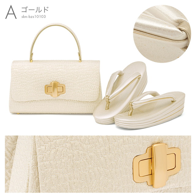 草履バッグセット 振袖 成人式 袴 卒業式 訪問着 日本製 販売 優花緒 ゴールド シルバー シンプル 三枚芯 草履 バッグ 和装 着物 M L 送料無料