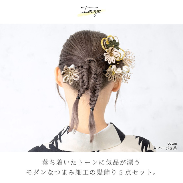 和装のヘアスタイルを彩る、小花の髪飾り5点セットです。