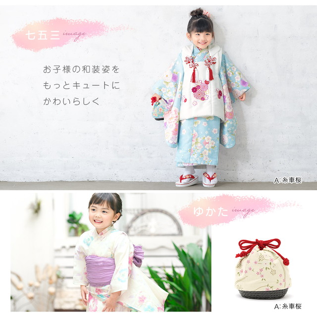 七五三 3歳 巾着 かごバッグ 子供 キッズ 女児 浴衣 竹 天然素材 緑 ピンク クリーム 赤 青 桜 和柄 ちりめん 紬調 こども カゴ巾着 送料無料