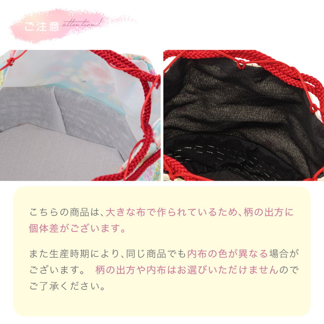 ※柄部分は大きな生地を使用して作られておりますので、色や柄の出方が画像と異なる場合がございます。