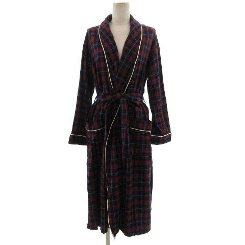 【中古】フリーズマート Free's Mart コート ガウン ショールカラー 羽織り トッパー ベルト付 チェック 赤 紺 白 FR