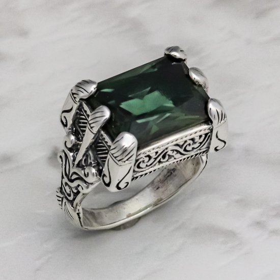 【ZOCALO】イスラミック・スクエア・リング(グリーンクォーツ)