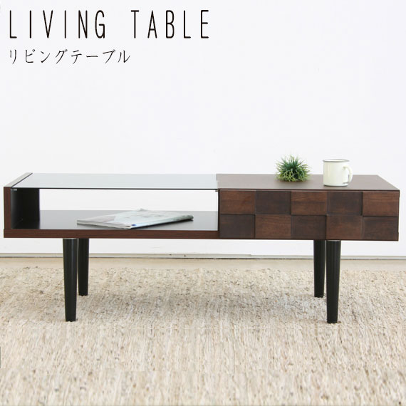 COLK コルク リビングテーブル (センターテーブル ローテーブル 机 収納棚 ラック ディスプレイ 国産 木目 ナチュラル 上品 おしゃれ ブラウン 茶 W110 幅110cm D45 奥行45cm H38.3 高さ38.3cm)