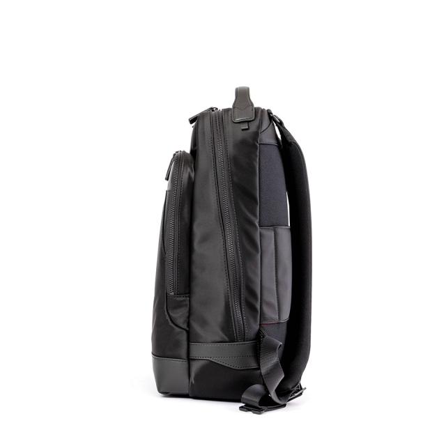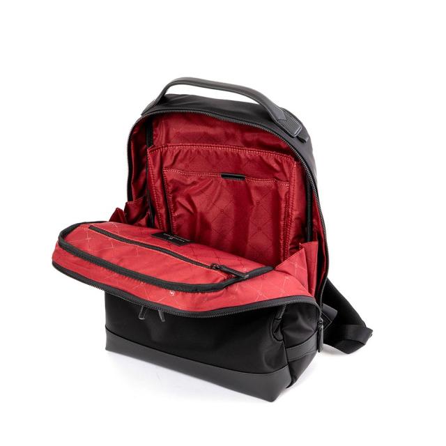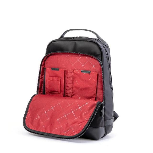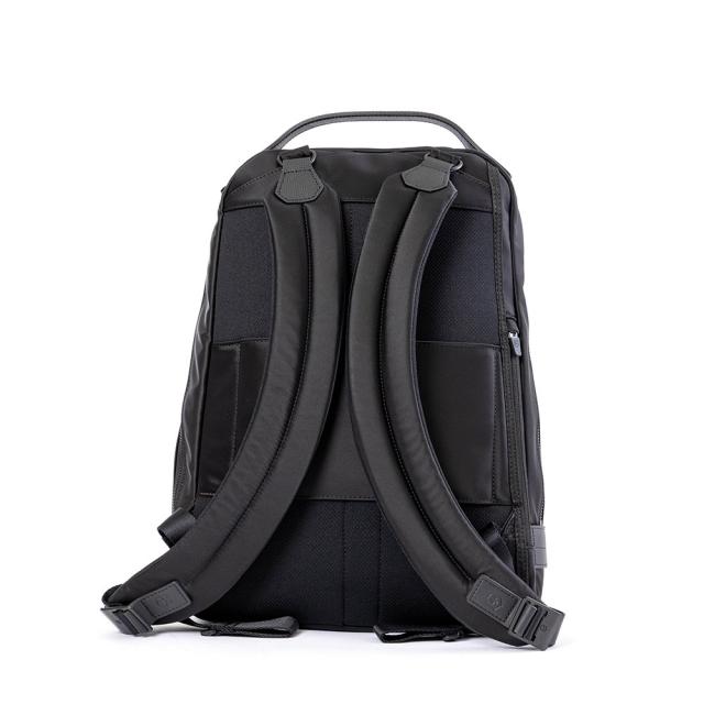 アロックス ネロ バックパックは、最先端のスタイルとスマートなビジネスの信頼性が融合したバッグです。スペースを最大限に活かしつつ、かさばらないデザイン。中には15.6インチのラップトップと10インチのタブレットをポケットに収納できます。ボトルや折り畳み傘のためのホルダー、携帯電話用ダブルポケット、隠しセキュリティ・ポーチを備え、多忙なスケジュールへの準備は万端です。
