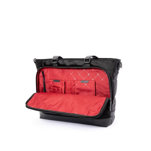 モダンで都会的なアロックス ネロ トートは、本シリーズの中でも特に多用途です。耐久性抜群のファブリック、ナイロンツイルで、ブラックレザーをアクセントにあしらい、大胆で洗練されたスタイルが際立ちます。ラップトップとビジネスの必需品を入れて、一日の活動を開始。多用途に活躍するマルチトートバッグです。