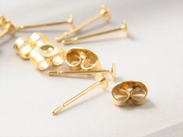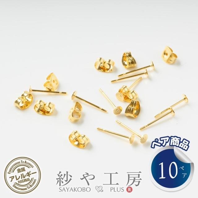ピアスパーツ 316L ステンレス キャッチ付 アクセサリー パーツ ゴールド 約1.2cm 10ペア 3mm平皿付 金属アレルギー対応 サージカル 問屋