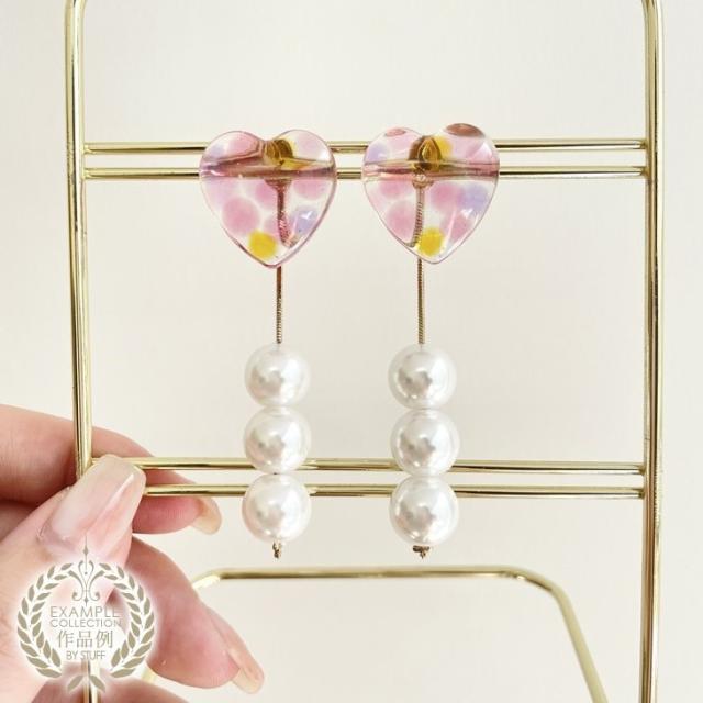 平皿にお好みのカボションやチャームを付けてオリジナルピアスの完成!