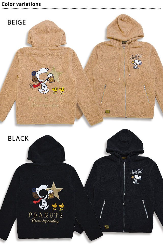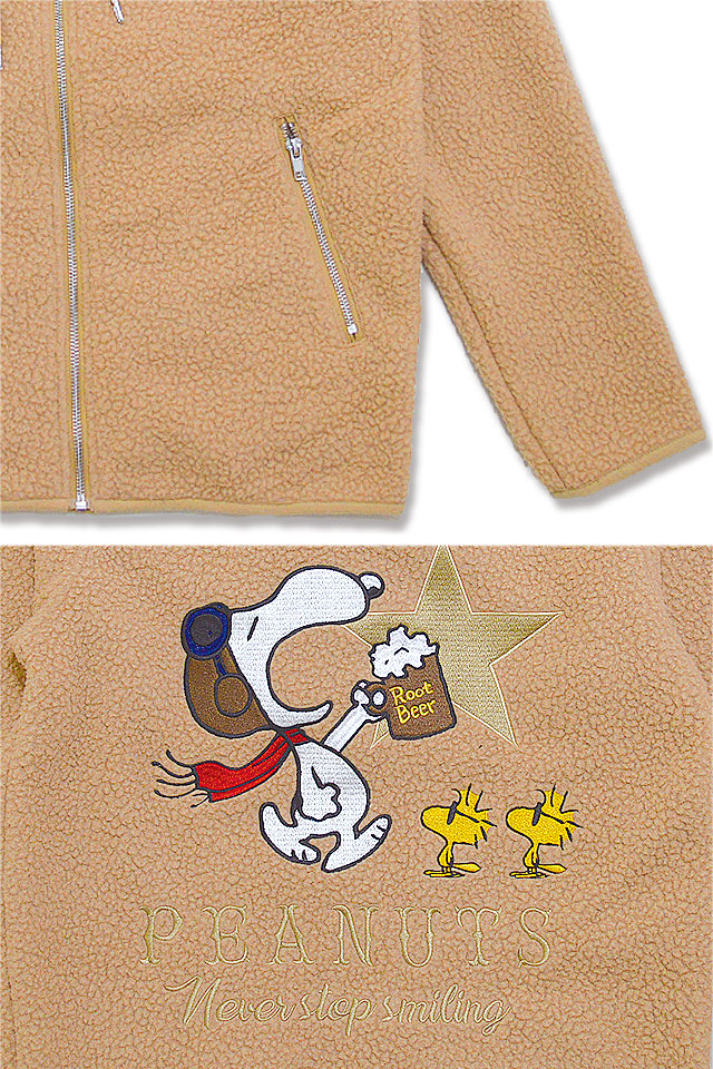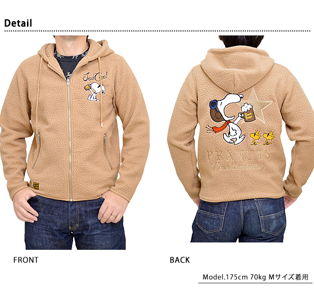 斬新なアイディアとインパクトのあるデザインが魅力的な、絡繰魂の姉妹ブランド【Flagstaff】より「スヌーピー×フラッグスタッフ ボアフリース刺繍パーカー(423079)」のご紹介です。 世界中で愛されている人気アニメ「PEANUTS(ピーナッツ)」とコラボ! バックにしっかり柄を入れている分、フロントはシンプルに仕上げ、メリハリを付けました。 フロントはジップアップ仕様。 裏地は袖通しの良いポリエステルを切り替えました。 アメカジ×スヌーピーが絶妙に組み合わせられた、Flagstaff拘りの逸品です。 | ||||||||||||||||||||||||||