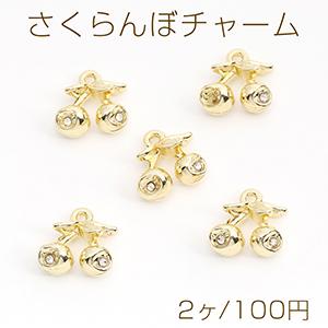 さくらんぼチャーム ラインストーン付きメタルチャーム 11×11mm ゴールド(2ヶ)