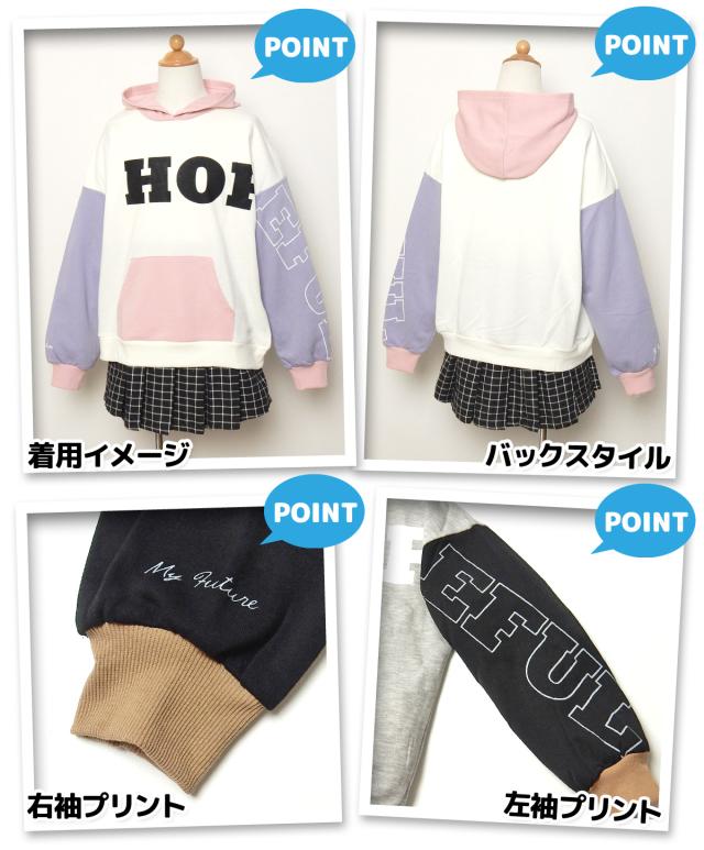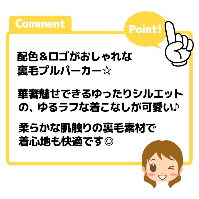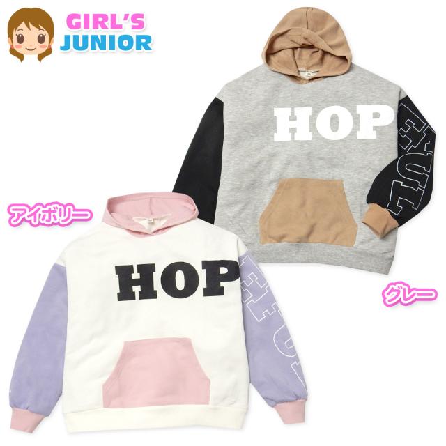【送料無料】女児 ジュニア 裏毛 長袖 プルパーカー スウェット ゆったりシルエット 配色切替 ロゴ 子供服 女の子 140cm 150cm 160cm nw-0824【メール便対応】