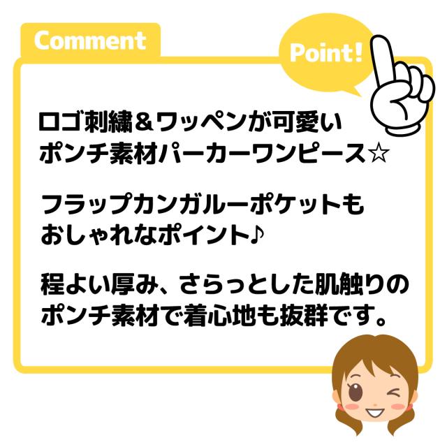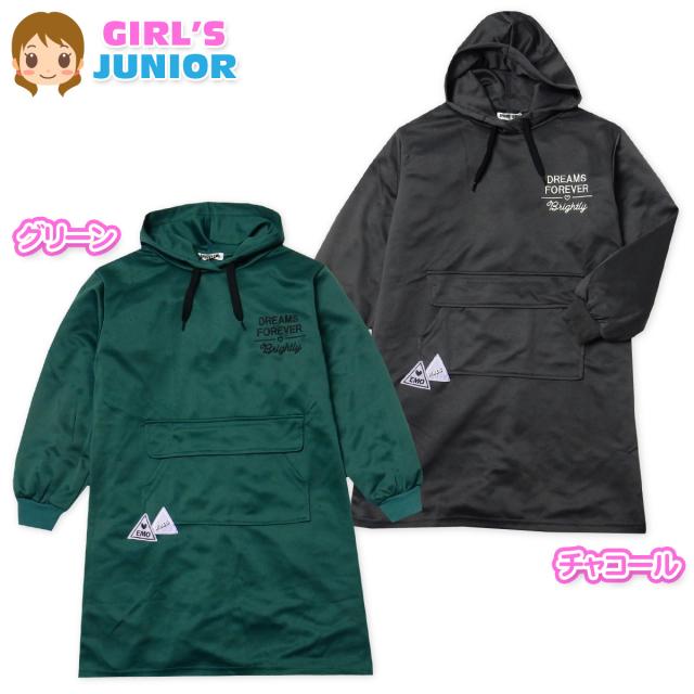 【送料無料】女児 ジュニア ポンチ素材 長袖 パーカー ワンピース フラップカンガルーポケット 刺繍 ワッペン 子供服 女の子 140cm 150cm 160cm nw-0841【メール便対応】