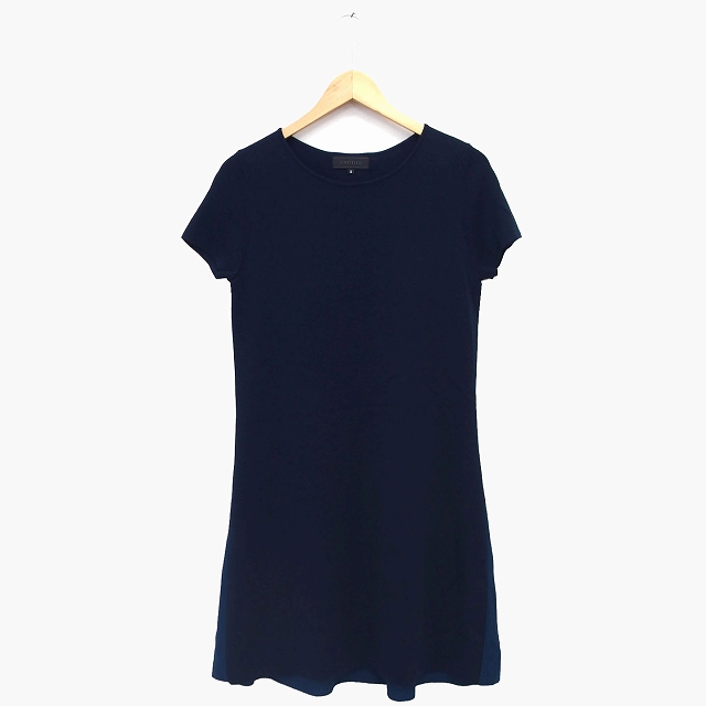 【中古】アンタイトル UNTITLED ニット ワンピース フレア ロング 半袖 丸首 ウール混 切替 バイカラー 無地 シンプル