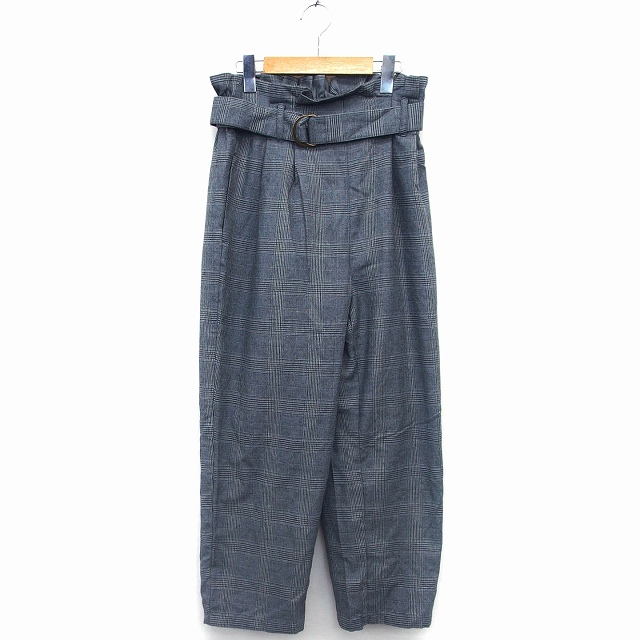 【中古】アズノウアズ as know as テーパード パンツ グレンチェック 柄 タック フリル ベルト * グレー 灰 /HT5
