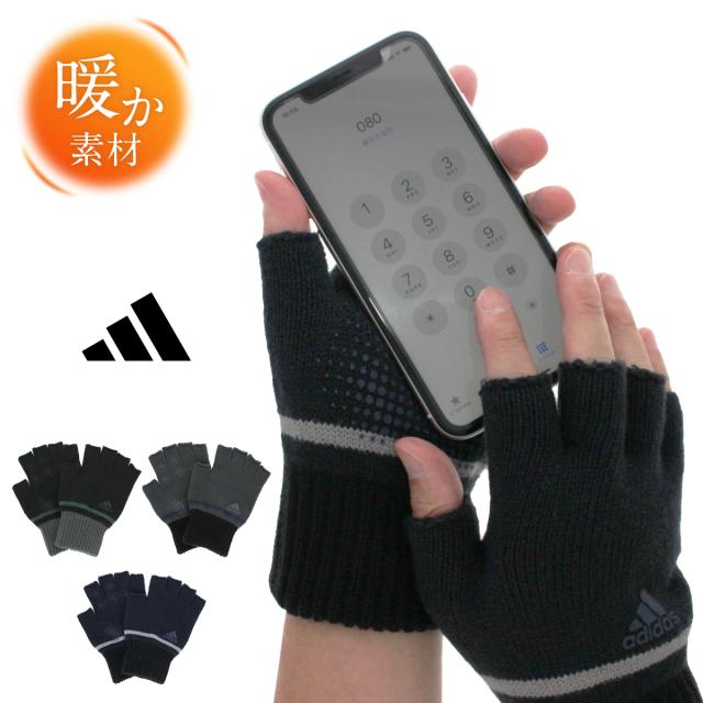 手袋 メンズ 日本製 adidas アディダス 人気ブランド 滑り止め付 指切り 手洗い可 軍手 通勤 ランニング スポーツ サッカー 野球 秋冬 防寒 半指