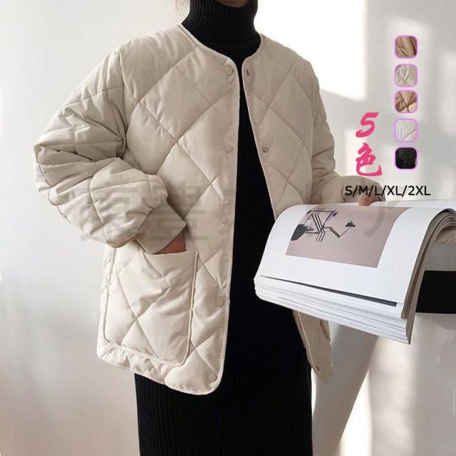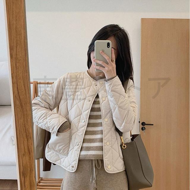 【キーワード】キルティングコート 中綿 レディース コート 中綿コート ショート丈 冬 キルティング ショートコート 無地 軽量 ジャケット 防寒 大きいサイズ ゆったり カーディガン アウター ポケット付き ノーカラー 秋冬 防風 お洒落 シンプル あったか 送料無料