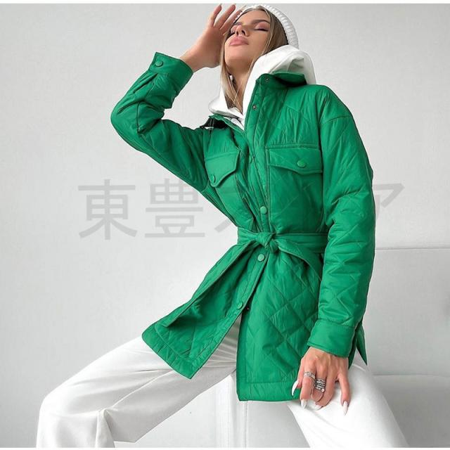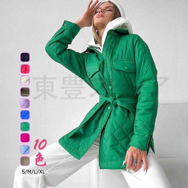 中綿ジャケット レディース 暖かい バックル 開襟 コート ゆったり アウター 冬 防寒 厚手 送料無料 秋 長袖 体型カバー 無地 シンプル 20代 30代 40代 50代 おしゃれ お洒落 可愛い カジュアル 男女兼用 プレゼント 新品