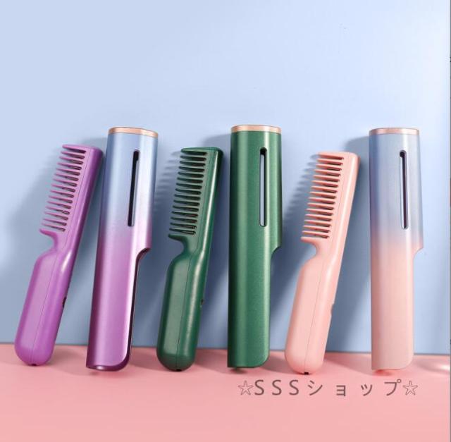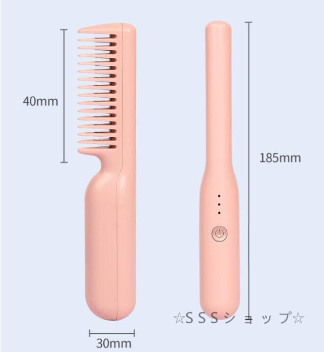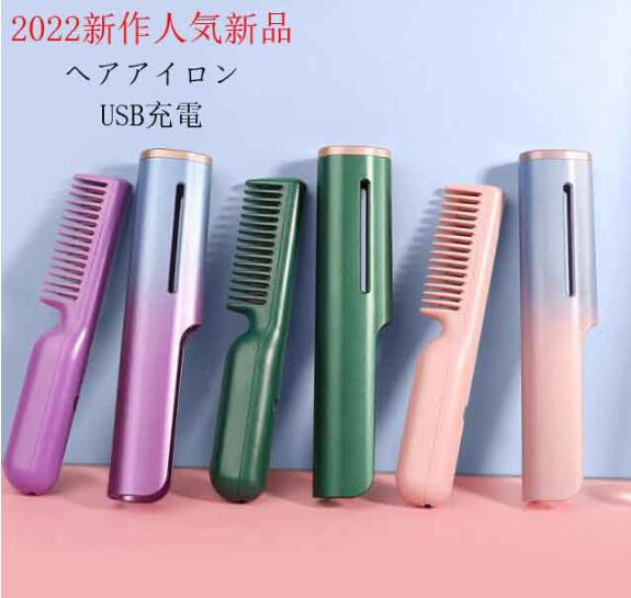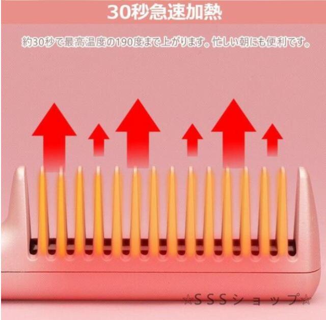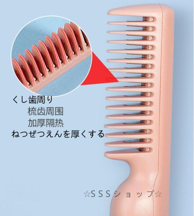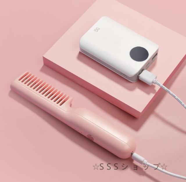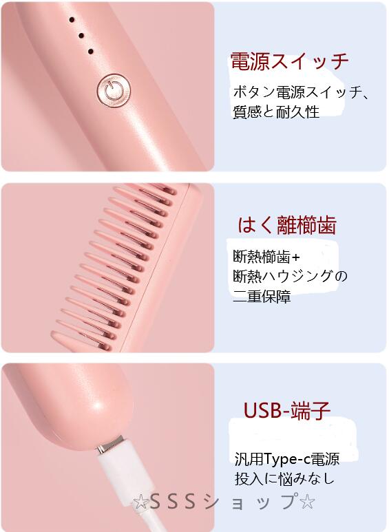ストレートブラシ ヘアアイロン ヒートブラシ アイロンブラシ くし型 急速加熱 恒温技術 静電気防止 やけど防止 キャップ付き USB給電式