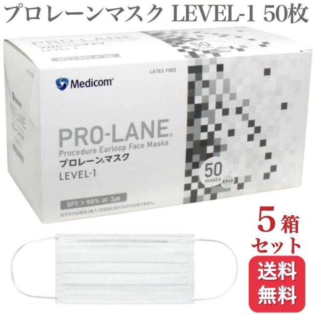 5箱セット メディコム プロレーンマスク LEVEL-1 ふつう 50枚入 医療用 サージカル