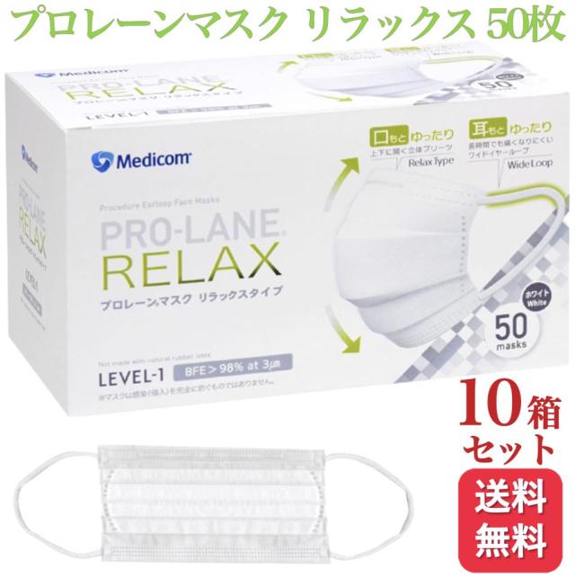 10箱セット メディコム プロレーンマスク リラックス ふつう 50枚入 医療用 サージカル