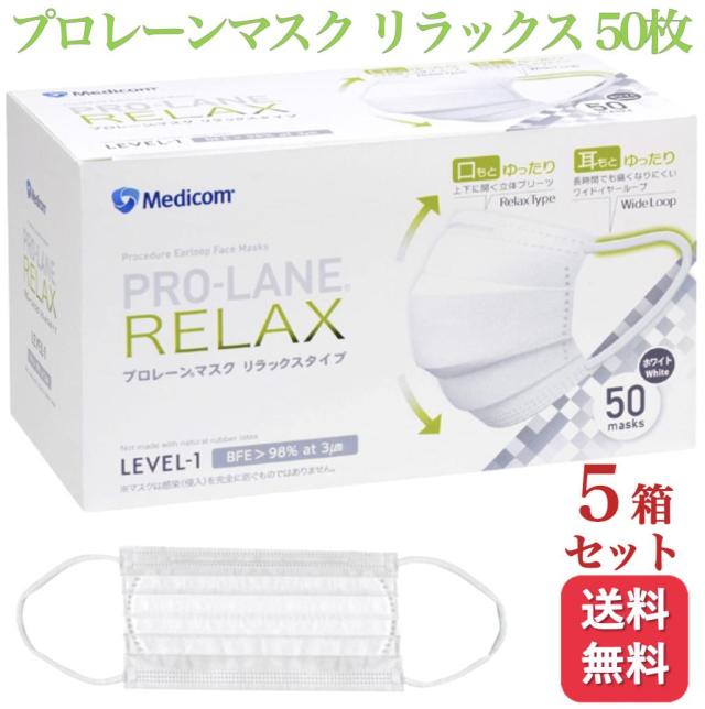 5箱セット メディコム プロレーンマスク リラックス ふつう 50枚入 医療用 サージカル