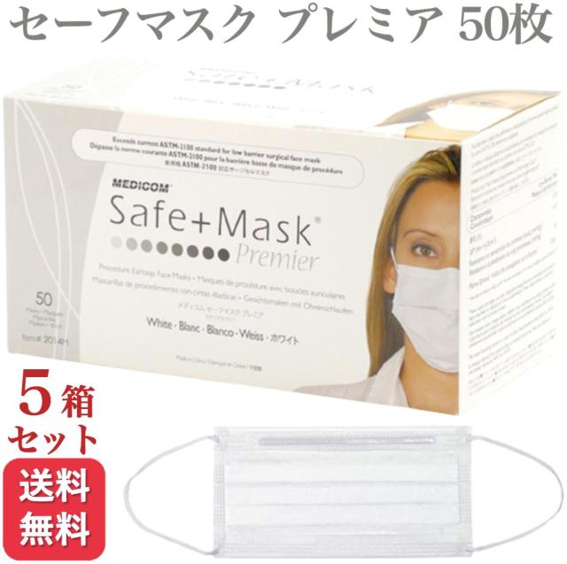 5箱セット メディコム セーフマスク プレミア ホワイト 50枚入 医療用 サージカル