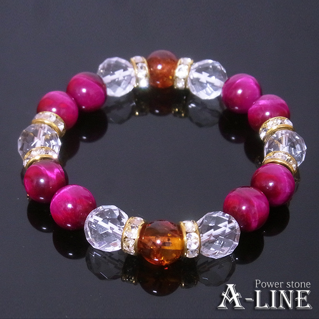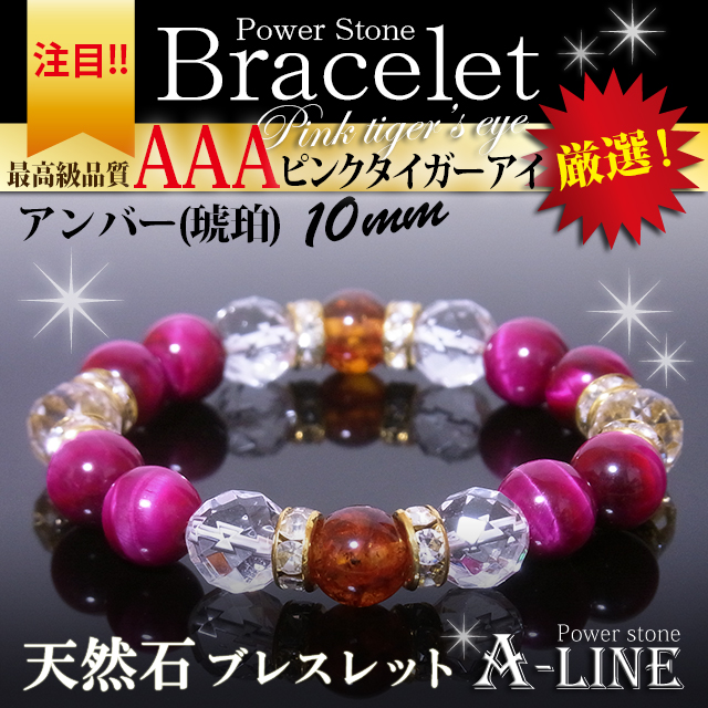 パワーストーン ブレスレット 金運UP アンバー(琥珀)&AAAピンクタイガーアイ10mm PW-3488
