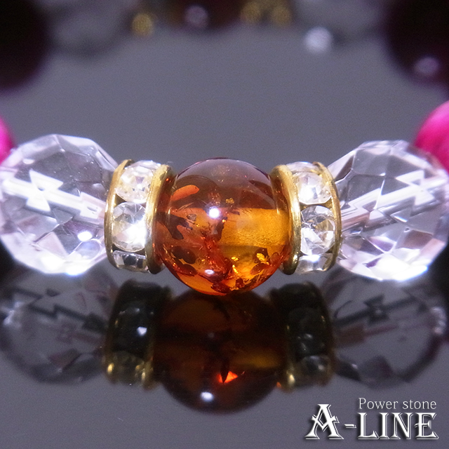 世界的金運石のピンクタイガーアイをベースに「最古の宝石」と呼ばれるアンバー(琥珀)を使用した「金運」と「財運」に特化したブレスレット♪