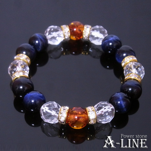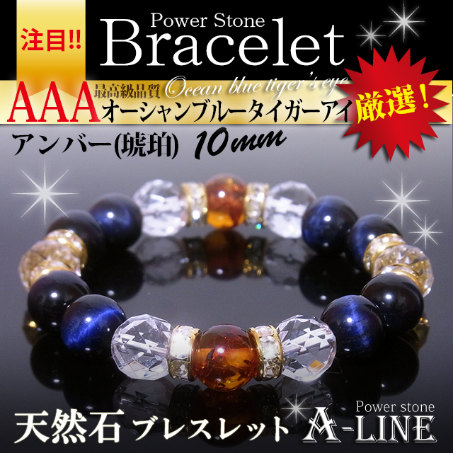 パワーストーン ブレスレット 金運UP アンバー(琥珀)&AAAオーシャンブルータイガーアイ10mm PW-3489