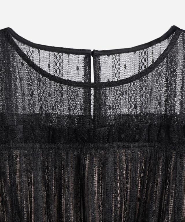 ヨークから袖にかけては抜け感のあるチュールでセンシュアルに肌見せ。