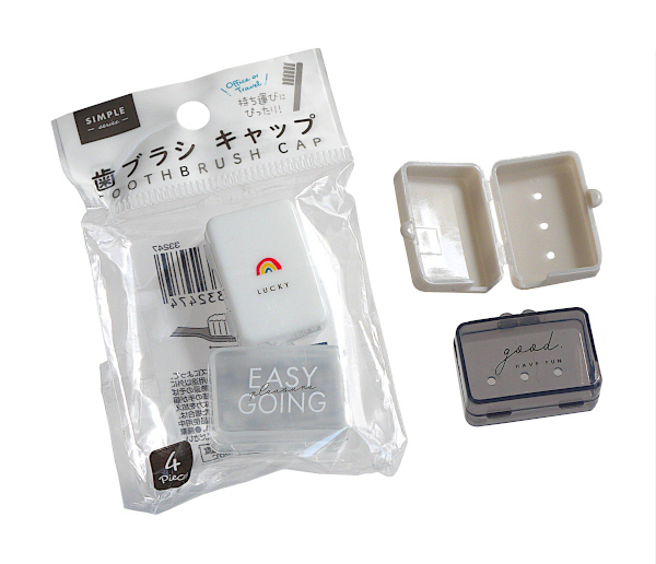 歯ブラシキャップ ロゴ 2.6×3.2×1.5cm 4個入 (100円ショップ 100円均一 100均一 100均)