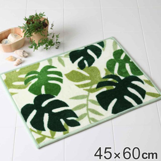 バスマット モンステラ 45×60cm ( お風呂マット 足拭きマット 洗濯OK お風呂 マット 浴室マット 洗濯可 ハワイアン リーフ おしゃれ )