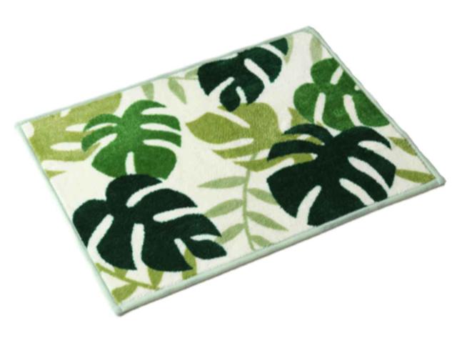 ●華やかなデザインがおしゃれなモンステラ柄の45×60cmバスマットです。